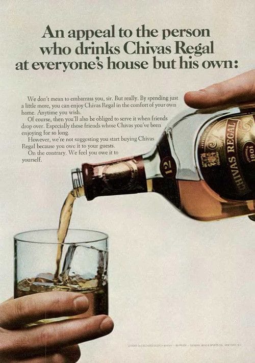 An appeal to the person who drinks Chivas Regal at everyone’s house but his own: