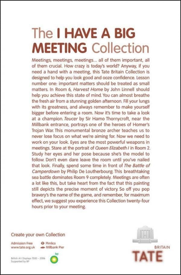 Excerpt from Tate’s “I Have a Big Meeting” Ad