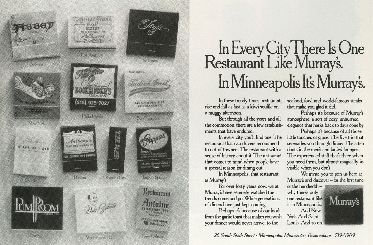 In Minneapolis, that restaurant is Murray’s.