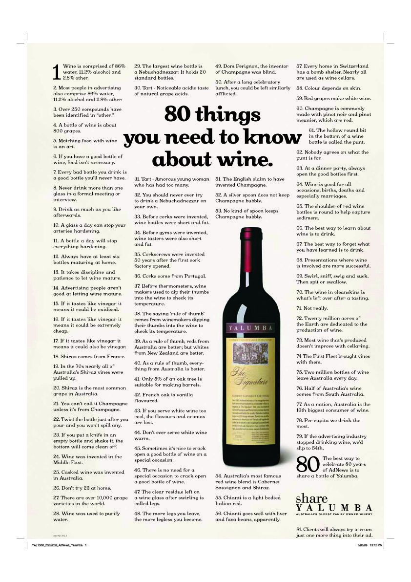 Excerpt from Yalumba Winery’s “80 things you need to know about wine” Ad