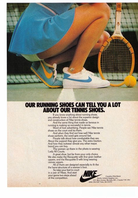And when they find out how well Nike tennis shoes perform, the word gets around fast.