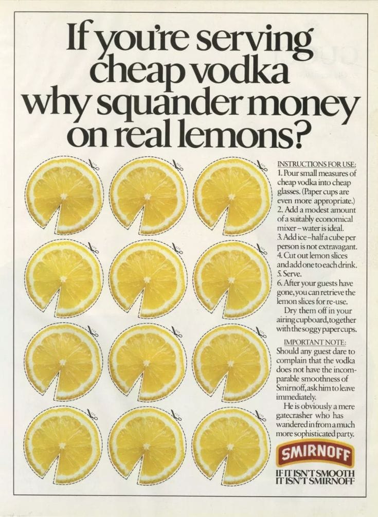 Smirnoff’s “If you’re serving cheap vodka” Ad